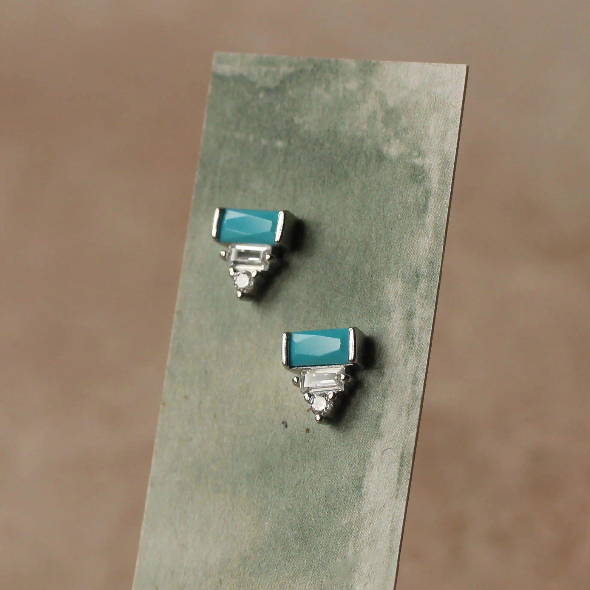 Art Deco Turquoise Pyramid Stud Earrings