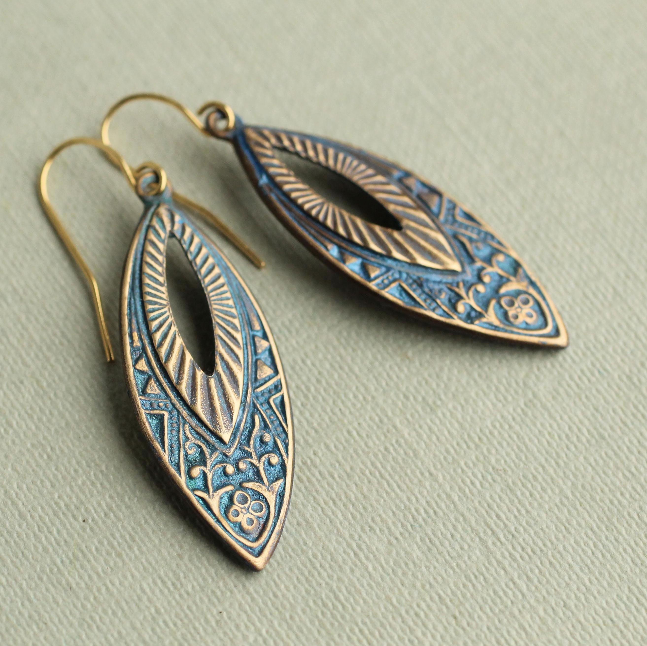 ["40th birthday gift","50th birthday gift","art deco earrings","art nouveau earrings","blue earrings","bohemian earrings","folk art jewelry","gift for friend","gold drop earrings","navy blue earrings","peacock earrings","retail-only","teardrop earrings","victorian jewelry"]