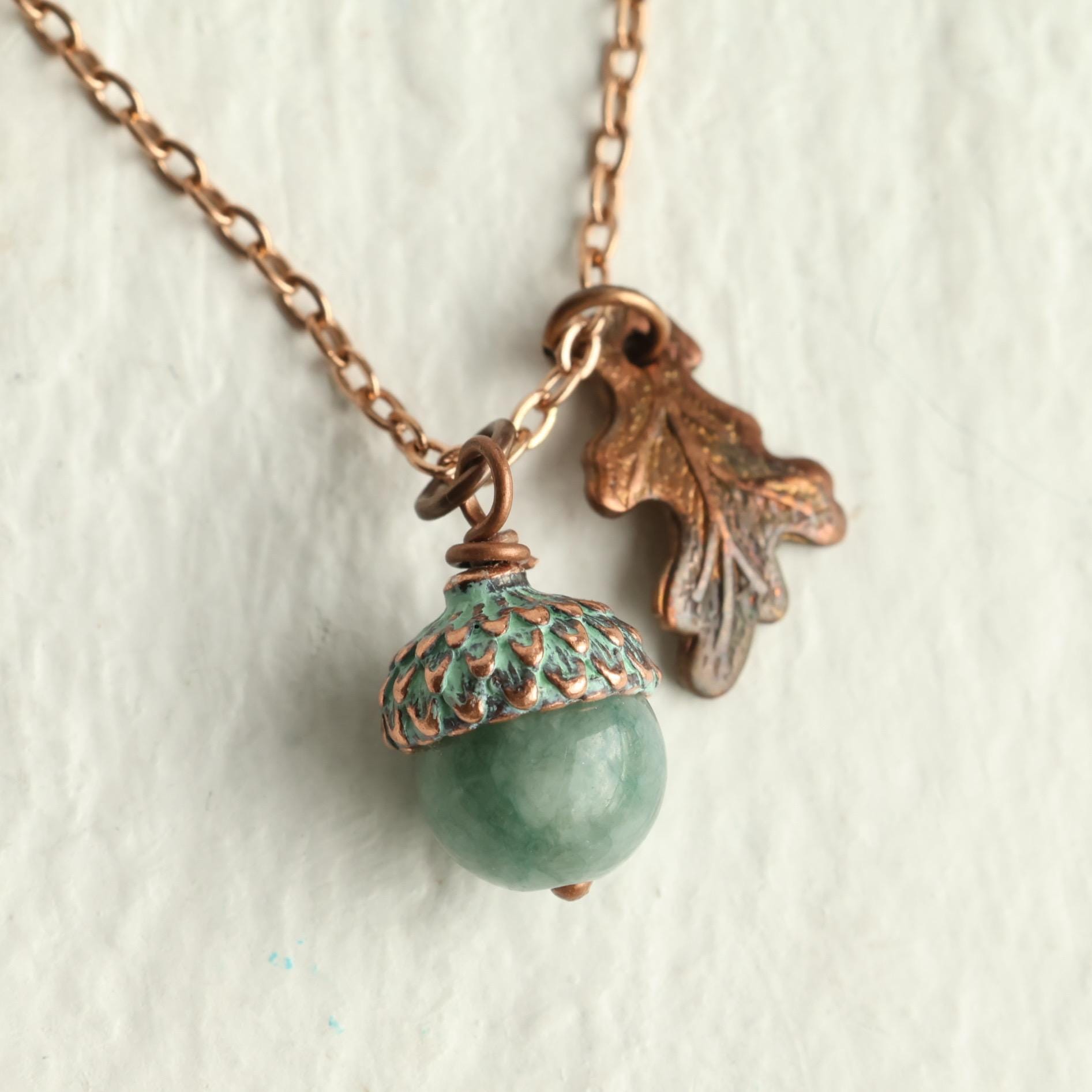 You can also choose to have a tiny copper oak leaf charm, with a darkened antique patina, to hang alongside your acorn pendant.