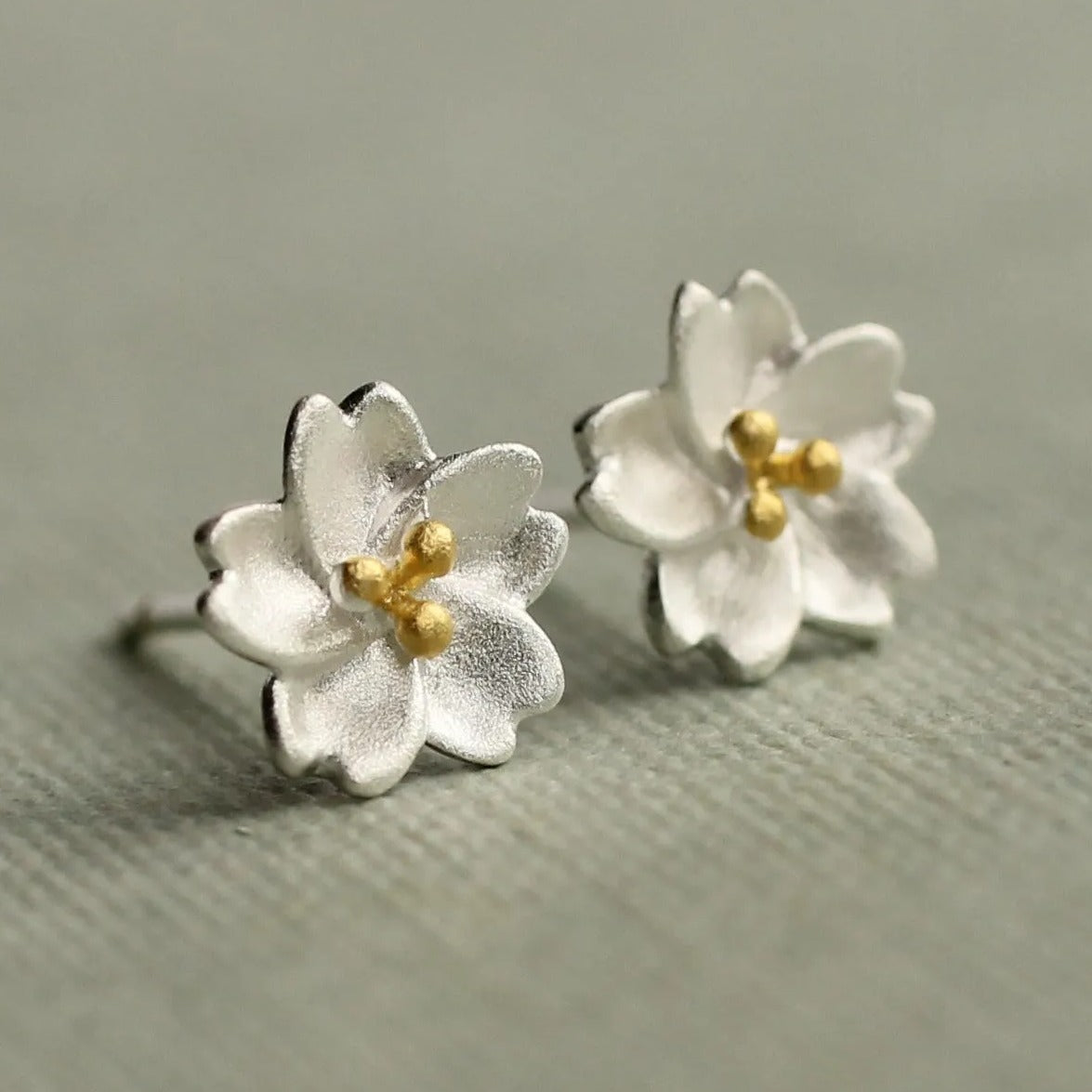 These sweet and charming flower earrings are made from sterling silver, with a tiny gold plated centre.