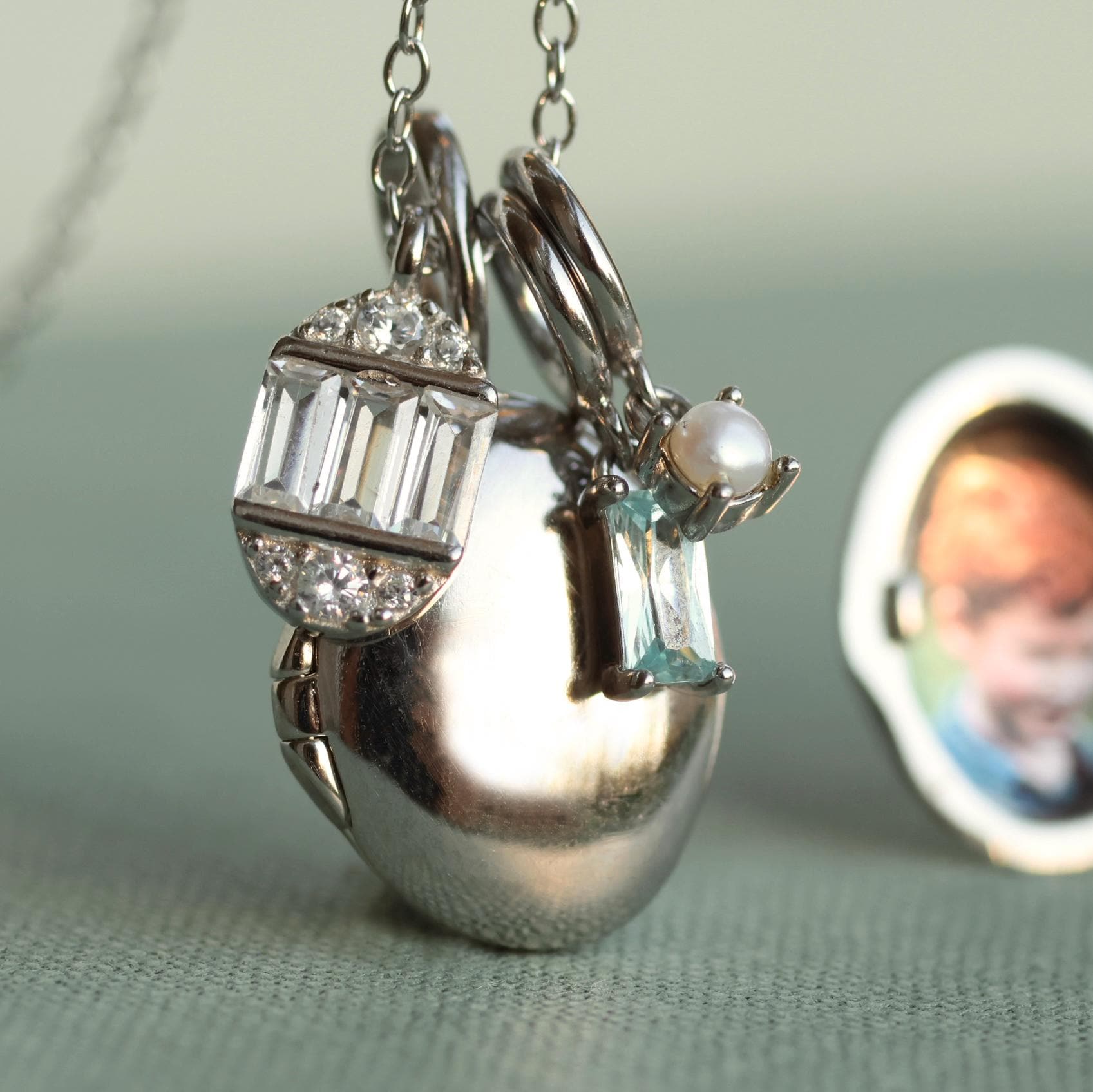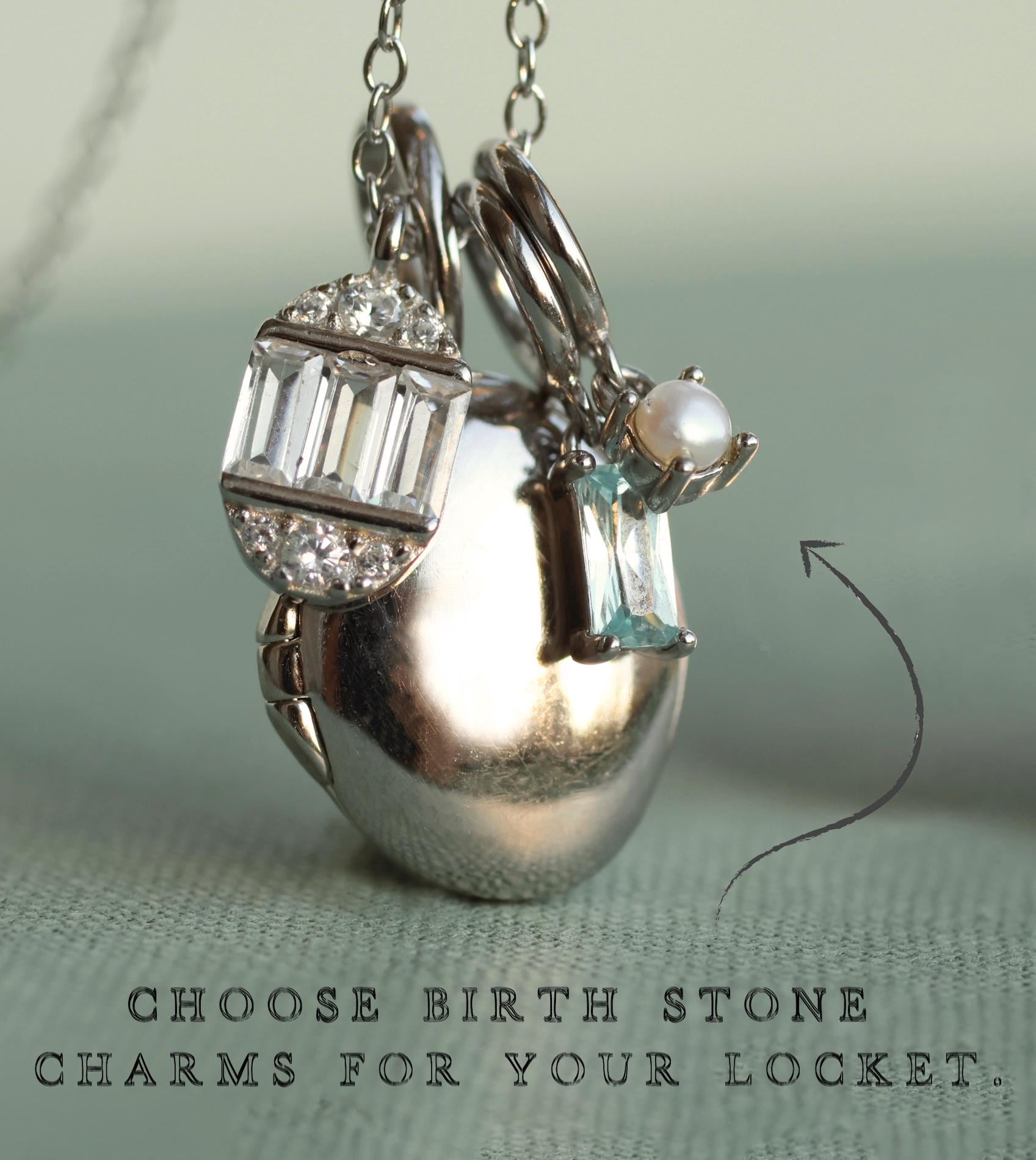 You can personalize this locket further by adding a number of tiny birth stone charms, which will hang alongside the locket to create your own personal and eclectic charm necklace.