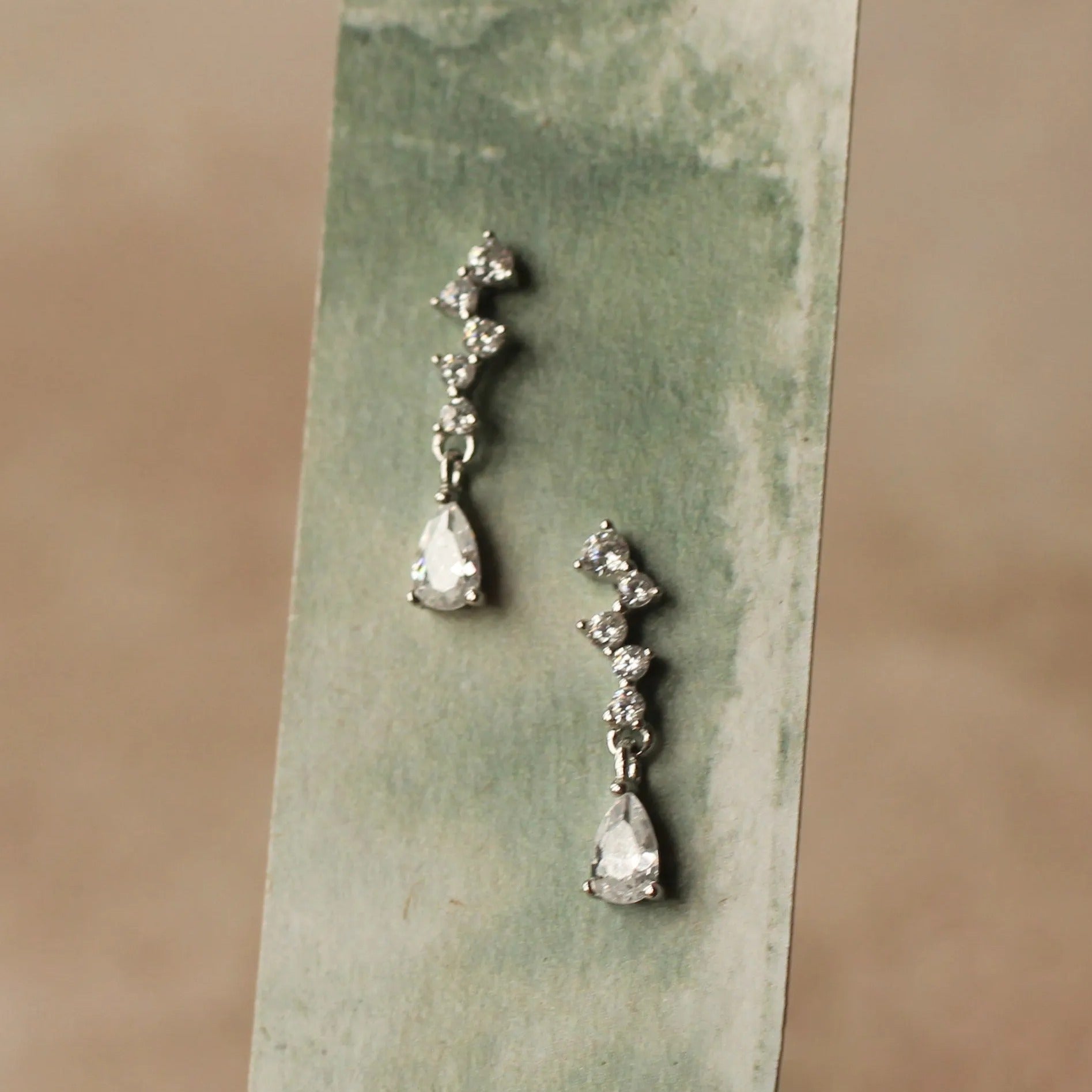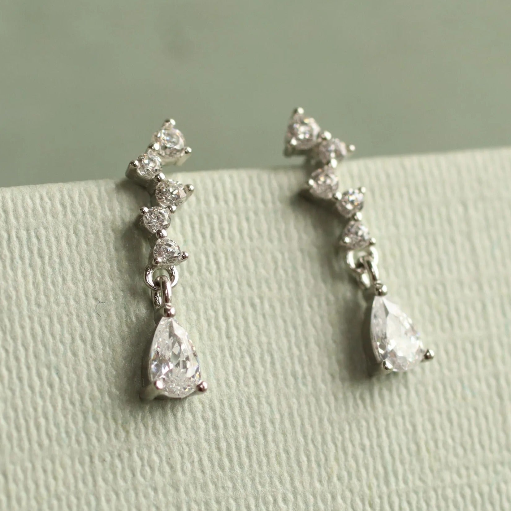 These charming and unusual stud earrings feature miniature cubic zirconia crystals formed to create a fluid, Art Nouveau inspired droplet design.