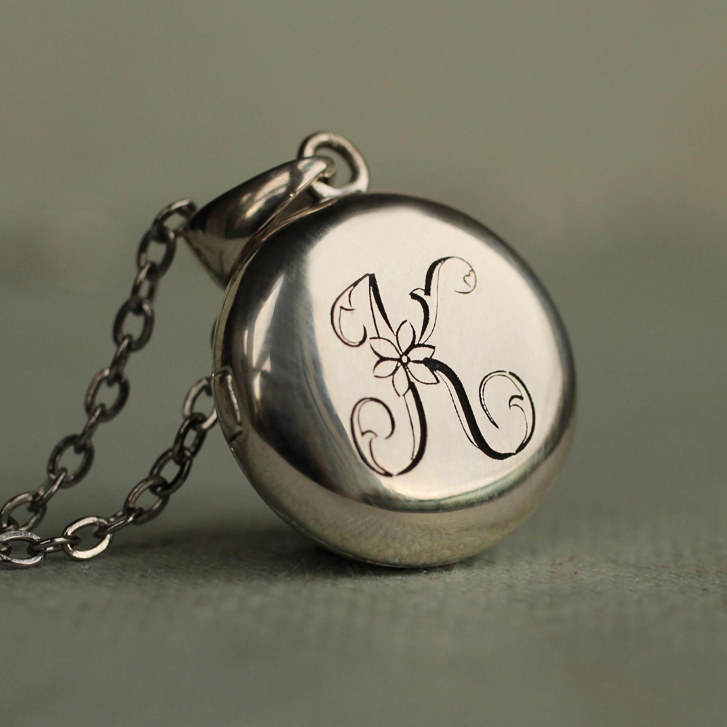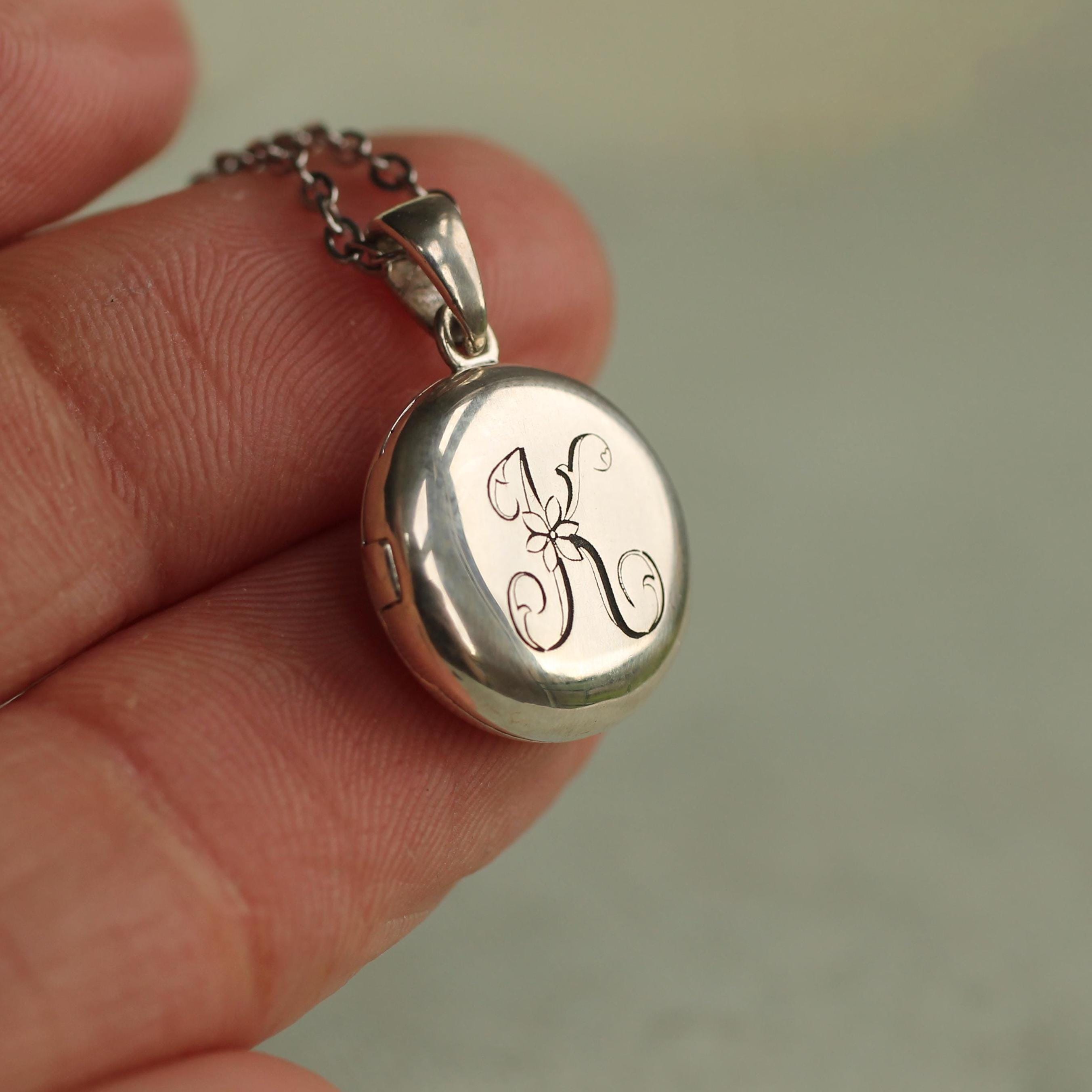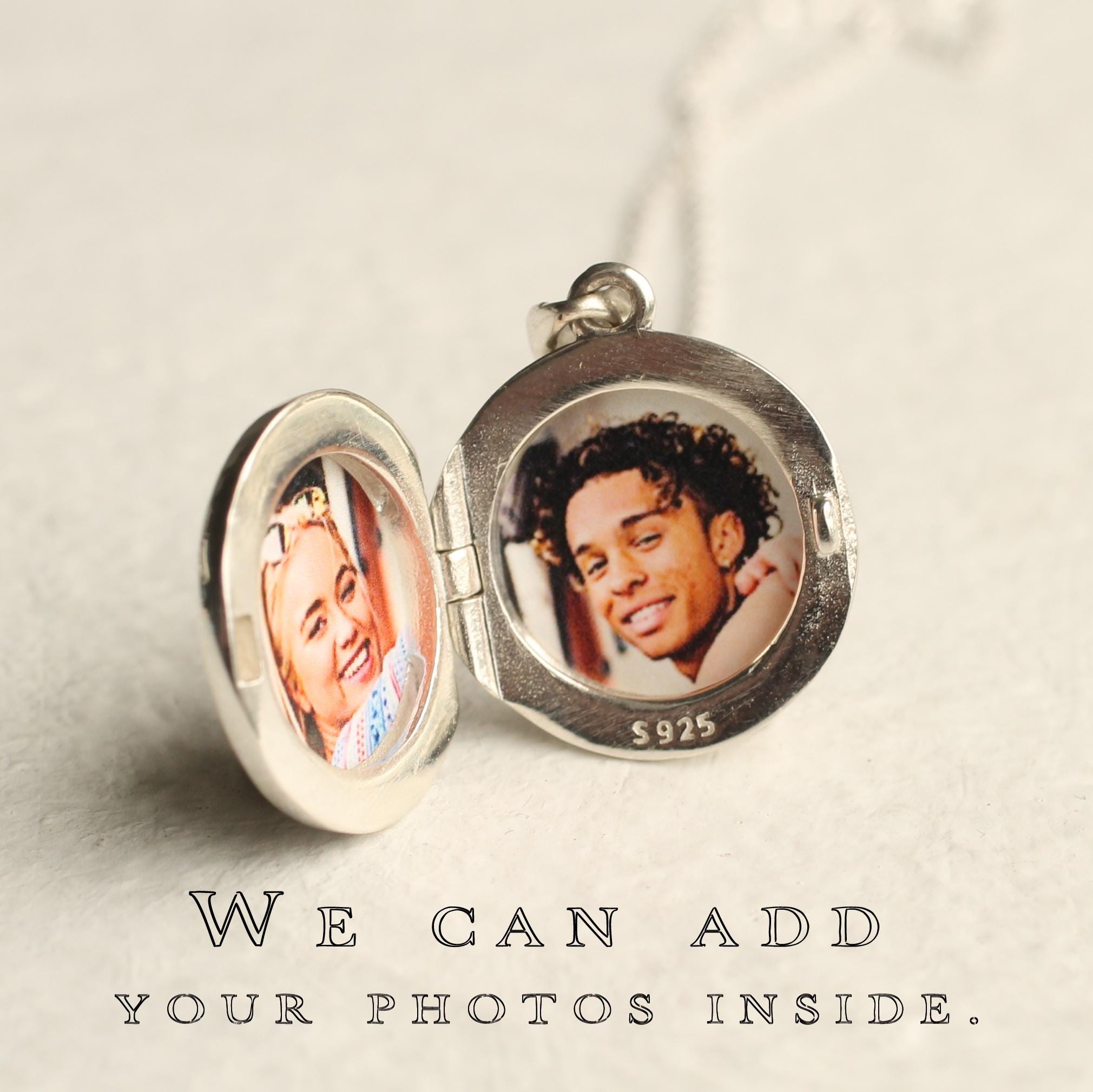 This solid sterling silver photo locket can be personalized with the monogram of your choice, beautifully engraved on the front. We can also professionally insert your photos inside, using a specially designed technique to ensure a perfect fit. We can also engrave the front and back of this locket with a custom engraving. The locket necklace measures 18mm in diameter and has a beautiful weight and quality. It is a beautifully made, high quality piece of jewellery. Our lockets are made to order and we offer a range of different chain lengths. Please refer to our illustration for a better idea of how necklace lengths will look when worn