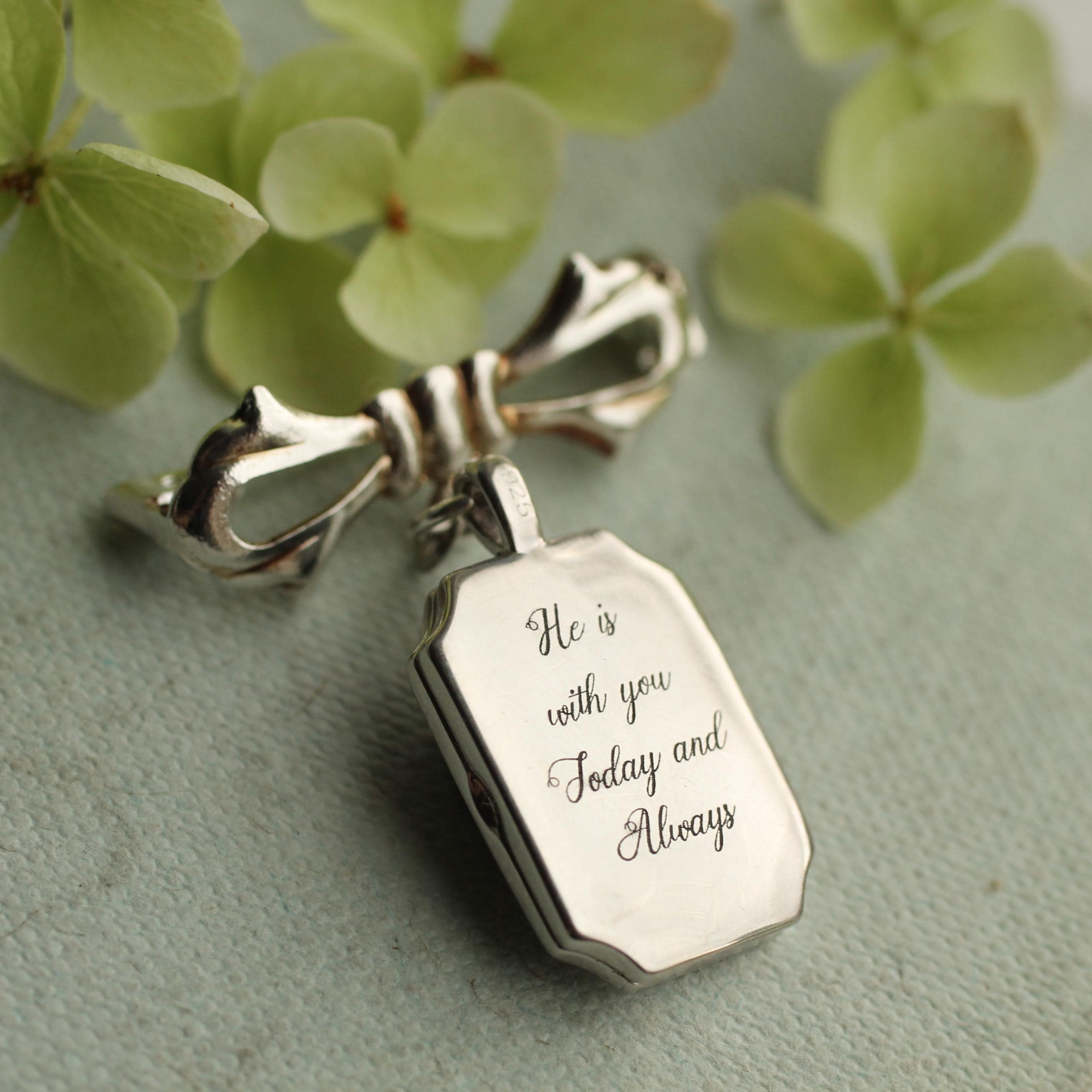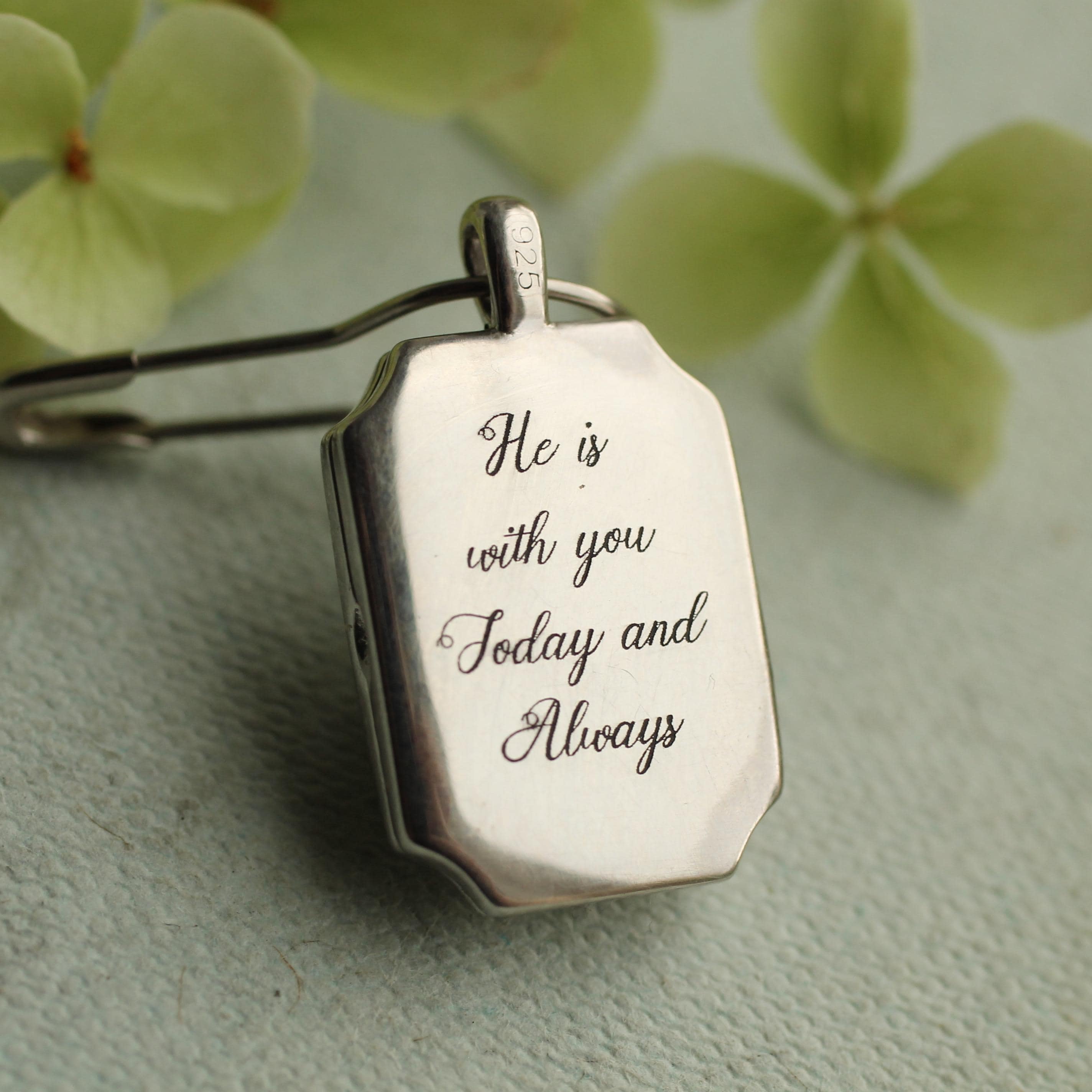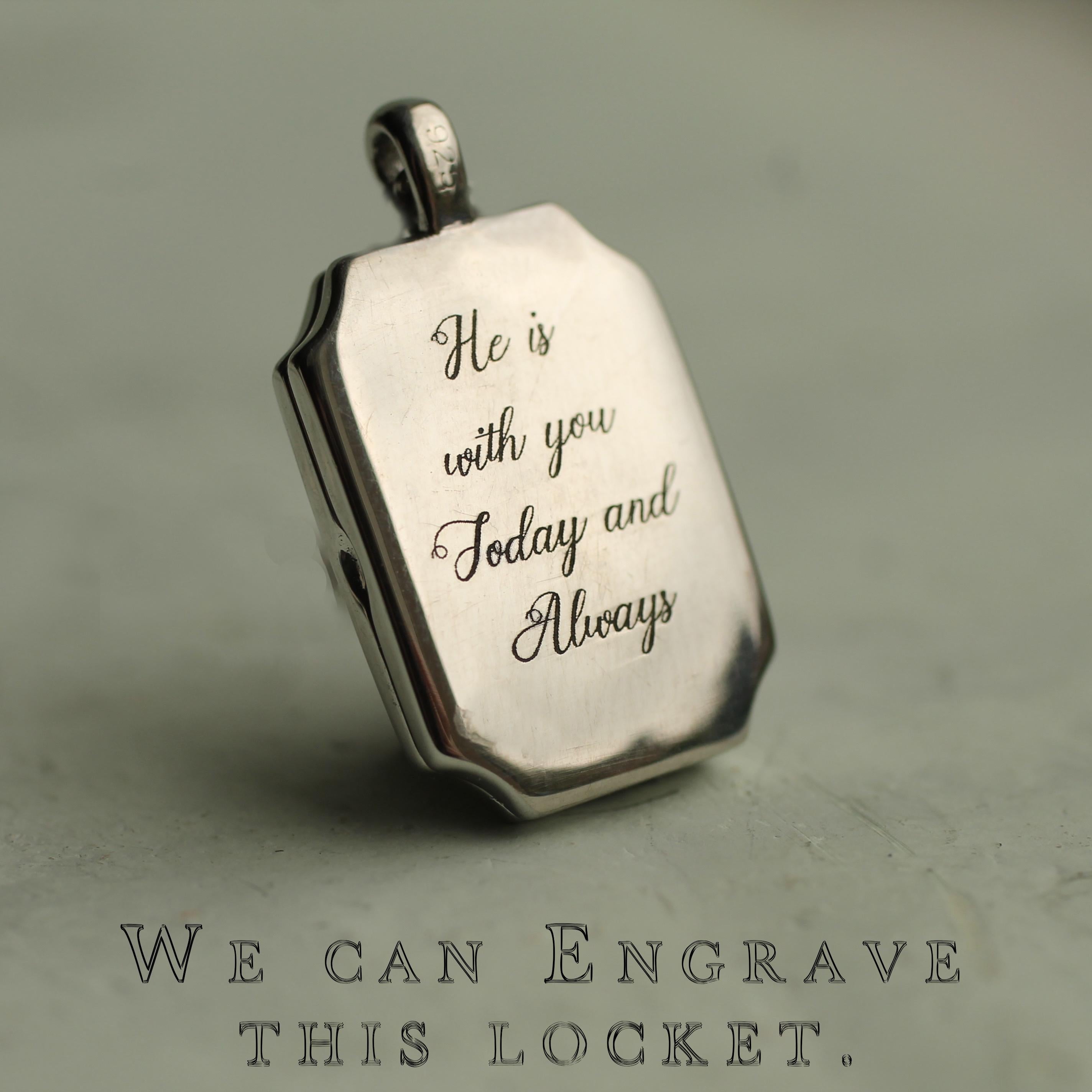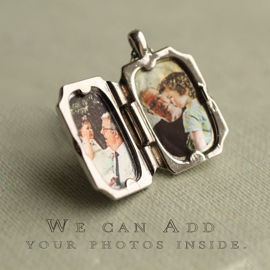 This rectangular sterling silver personalized locket necklace has been designed in our Edinburgh studio! We can professionally insert your photos inside, using a specially designed technique to ensure a perfect fit. You may also choose to have a personalized inscription engraved on your locket.