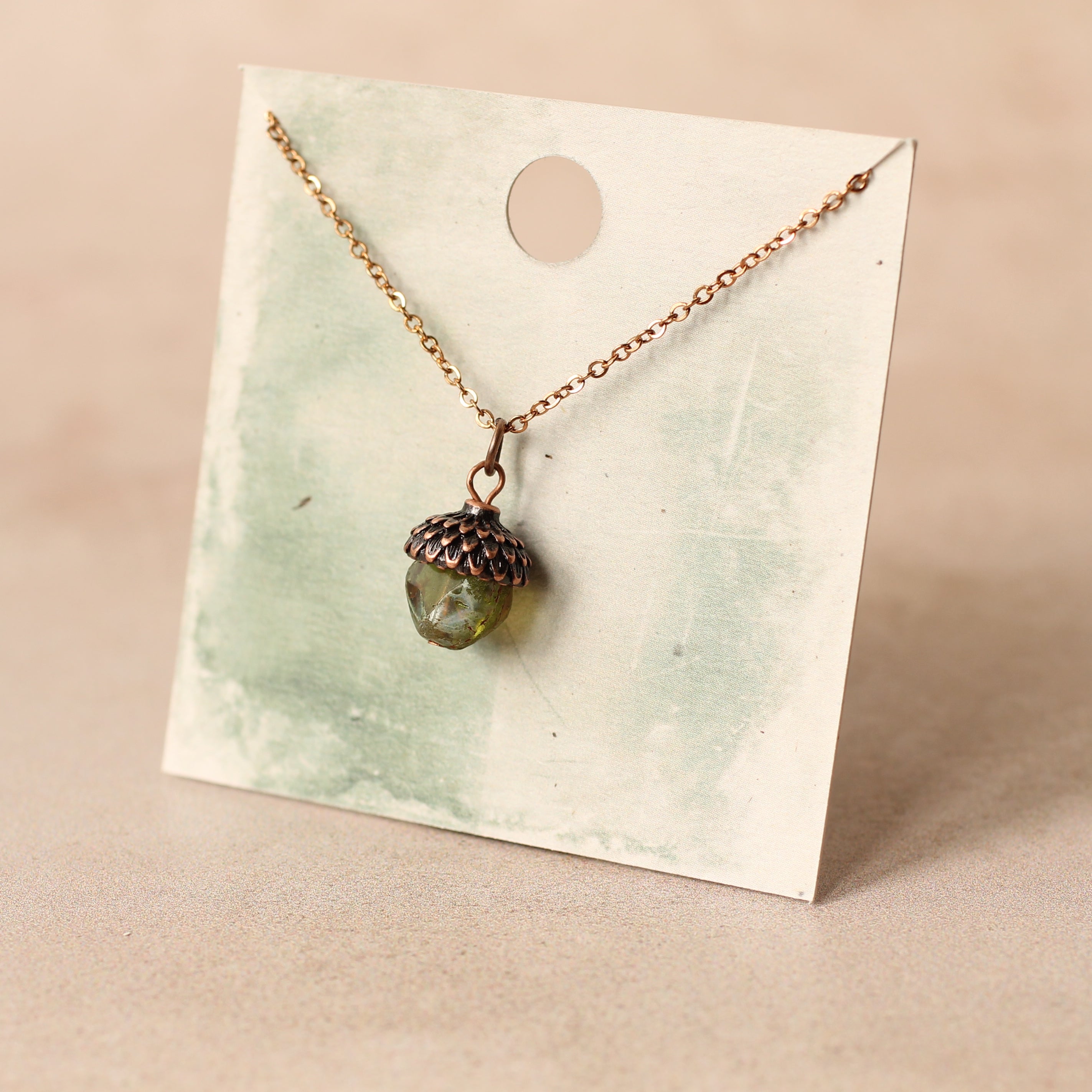 The acorn pendant measures just 12mm (half an inch) long and the necklace chain can be worn between 16 and 18" in length, perfect for this delicate pendant.