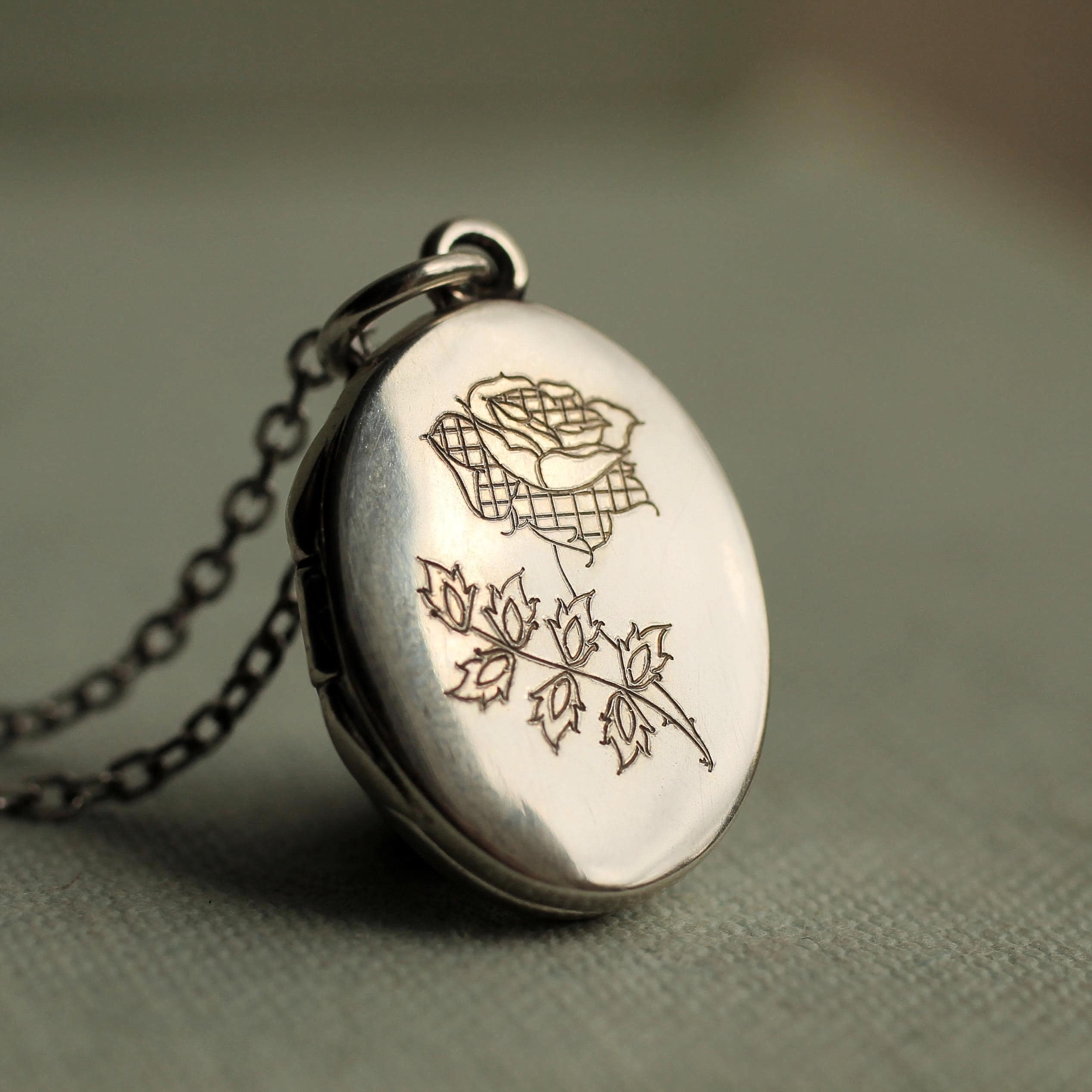 This personalized sterling silver locket necklace has been engraved with a rose, specially designed in our Edinburgh studio! Rose is the birth flower for June, making this a perfect and thoughtful gift idea.