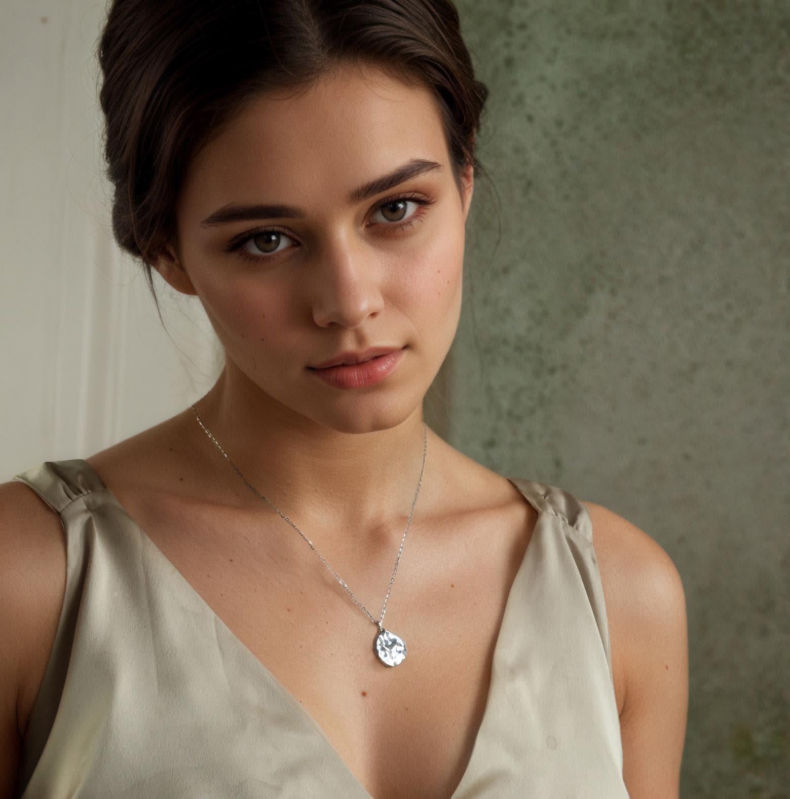 This sterling silver personalized locket necklace has a beautiful and unusual irregular shape, with soft dimpling texture on the surface. It reminds us of a beautiful pebble!