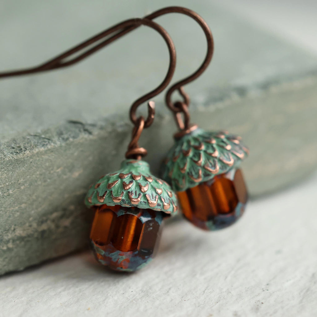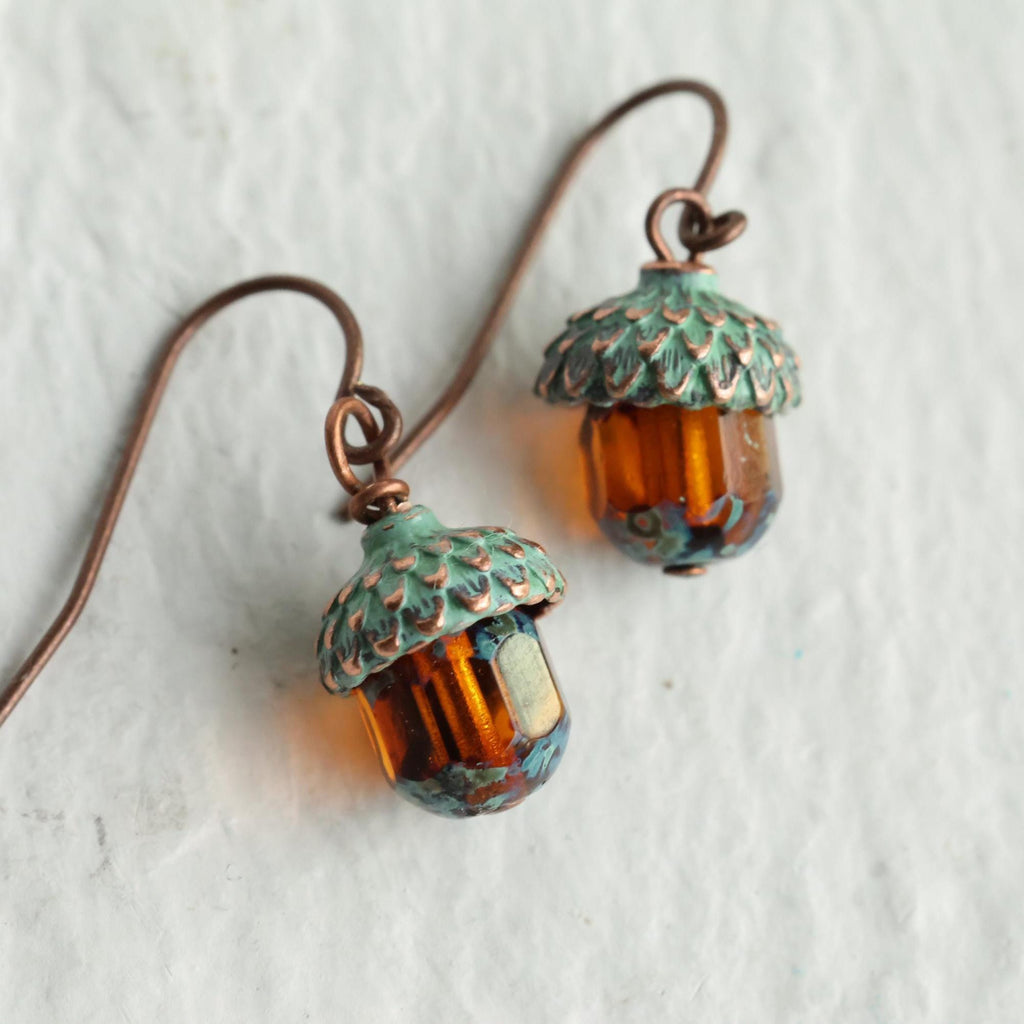 ["acorn earrings","amber earrings","gift for gardener","gift for grandma","gift for mom","gift for sister","gifts for fall","GW","retail-only","rustic jewelry","sage green","squirrel gift","statement earrings","woodland gift","woodland jewelry"]